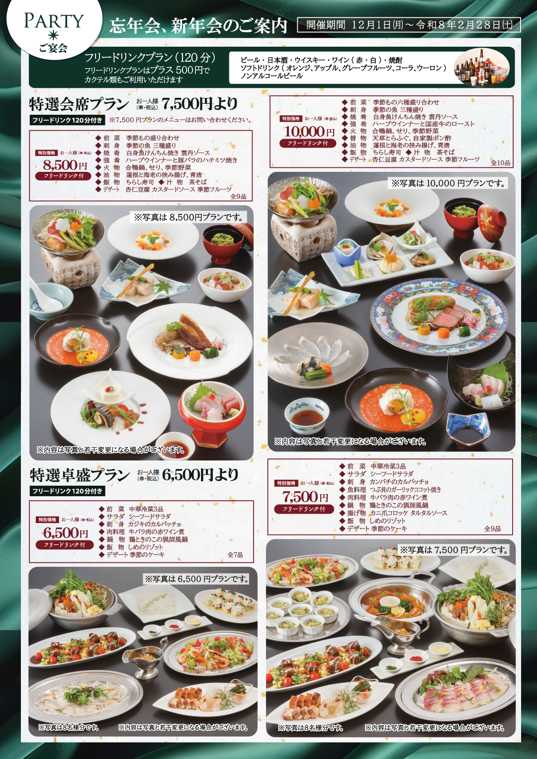 HOME > 宴会・会議 > 新着宴会プラン > 忘年会・新年会プラン (12月1日~2月28日)