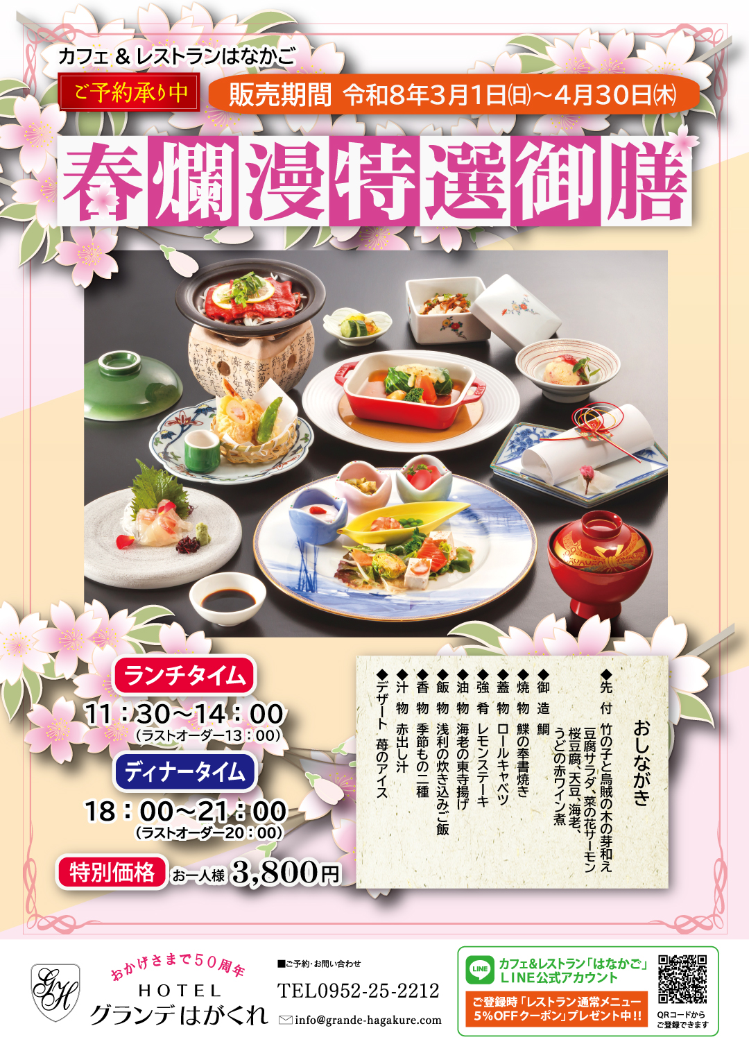 HOME > レストラン > 新着レストランイベント > 3月1日(日)~4月30日(木)レストランイベント膳「春爛漫特選御膳」ご予約承り中!