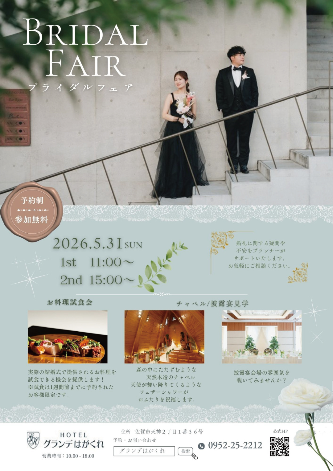 HOME > ウェディング > INFORMATION > ブライダルフェア【5/31[日] 予約制・入場無料】