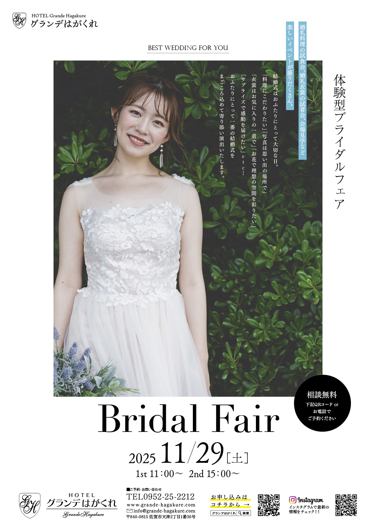 HOME > ウェディング > INFORMATION > 体験型ブライダルフェア【11/29[土] 予約制・入場無料】